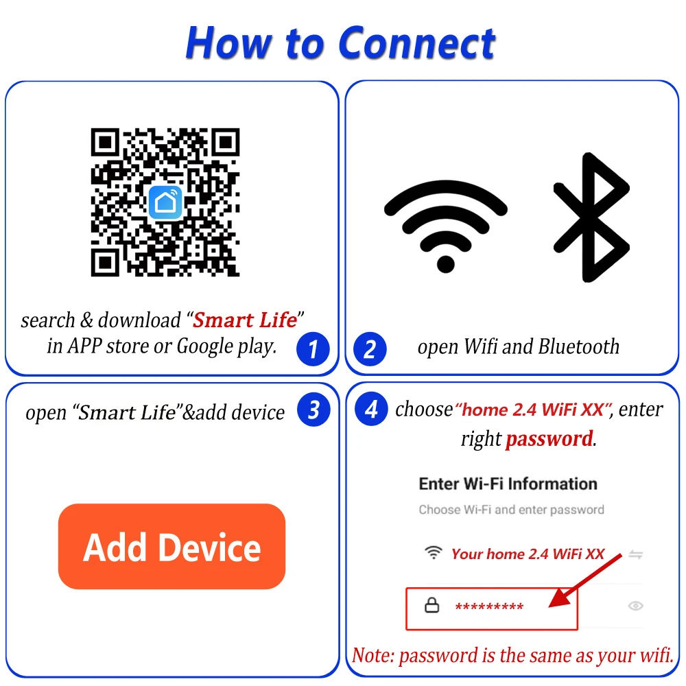Remotely controlled by WiFi/Smart APP (Android/iOS support, 2.4GHz Wi-Fi network)